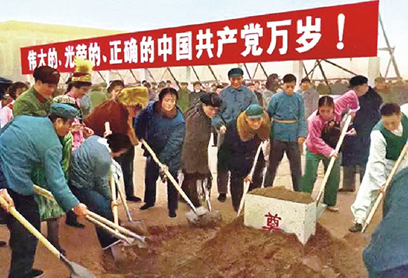 1976年11月24日,各界群众代表为毛主席纪念堂奠石培土