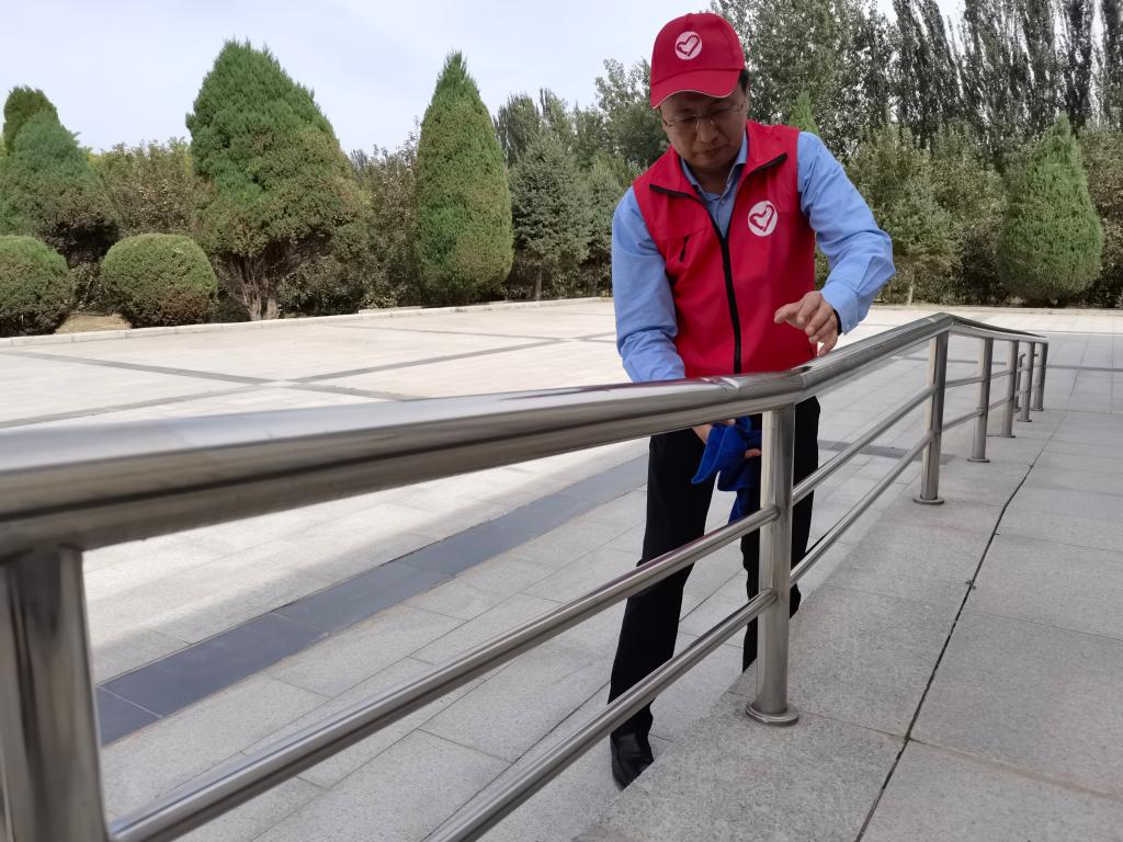 随后,全体党员干部来到余家桥烈士陵园开展党史学习教育。1949年9月20日,在余家桥战斗中,47名解放军指战员为解放宁夏献出了宝贵生命。在烈士墓前,全体党员干部默哀致敬,表达对革命烈士的哀思。在纪念碑前,全体党员面对党旗庄严宣誓、重温入党誓词。在展馆内,党员干部认真聆听先烈英雄事迹,仔细观看革命文物,不断汲取精神力量。在陵园里,党员干部开展志愿服务活动,有人清扫落叶,有人捡垃圾,还有人认真擦拭护栏、牌匾,党员干部们以实际行动表达了对革命先烈的缅怀之情。