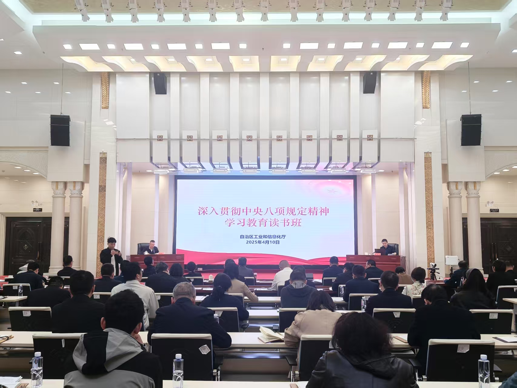 为推进深入贯彻中央八项规定精神学习教育走深走实、见行见效,410日,小鸭看看 举办深入贯彻中央八项规定精神学习教育辅导报告会暨读书班开班式。厅党组书记、厅长杨金海主持开班式并作动员讲话,自治区纪委监委有关同志围绕“纵深推进党风廉政建设和反腐败斗争”进行了专题辅导。厅机关、事业单位全体干部职工及厅社会组织党委实体党支部党员200余人参加。