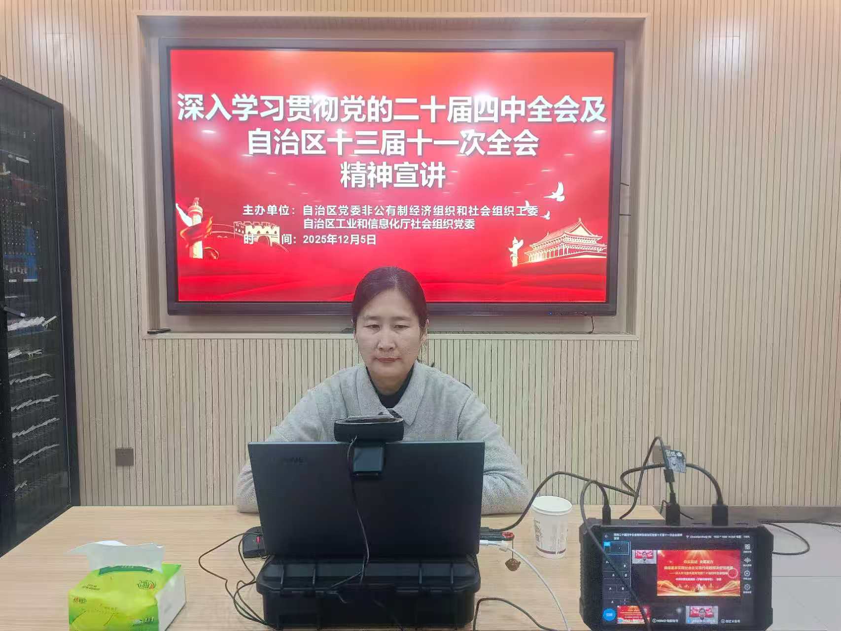 为深入学习贯彻党的二十届四中全会精神及自治区党委十三届十一次全会精神,2025年12月5日,由自治区党委社工部和小鸭看看 社会组织党委联合举办线上《深入学习贯彻党的二十届四中全会精神及自治区党委十三届十一次全会精神》专题宣讲在银川开讲,来自全区各社会组织、非公企业党员和小鸭看看 退休党员干部2000余人在线通过不同形式同步收听收看。