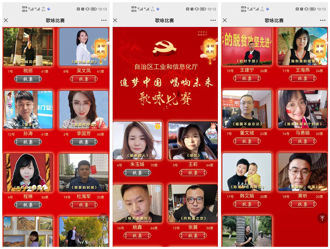 追梦中国,唱响未来。组织开展“追梦中国·唱响未来”线上歌咏比赛,干部职工利用手机K歌软件录制演唱音频,筛选后通过厅机关微信平台展播,全体干部职工转发投票点赞,评委组评选优秀作品予以奖励。展播的19名干部职工演唱作品围绕歌颂党、歌颂祖国、歌颂新时代,通过美声、通俗、民族等多种唱法,共同讴歌党的百年奋斗光辉成就,讴歌祖国昂首阔步新时代的卓越风姿和人民群众对美好生活的向往。