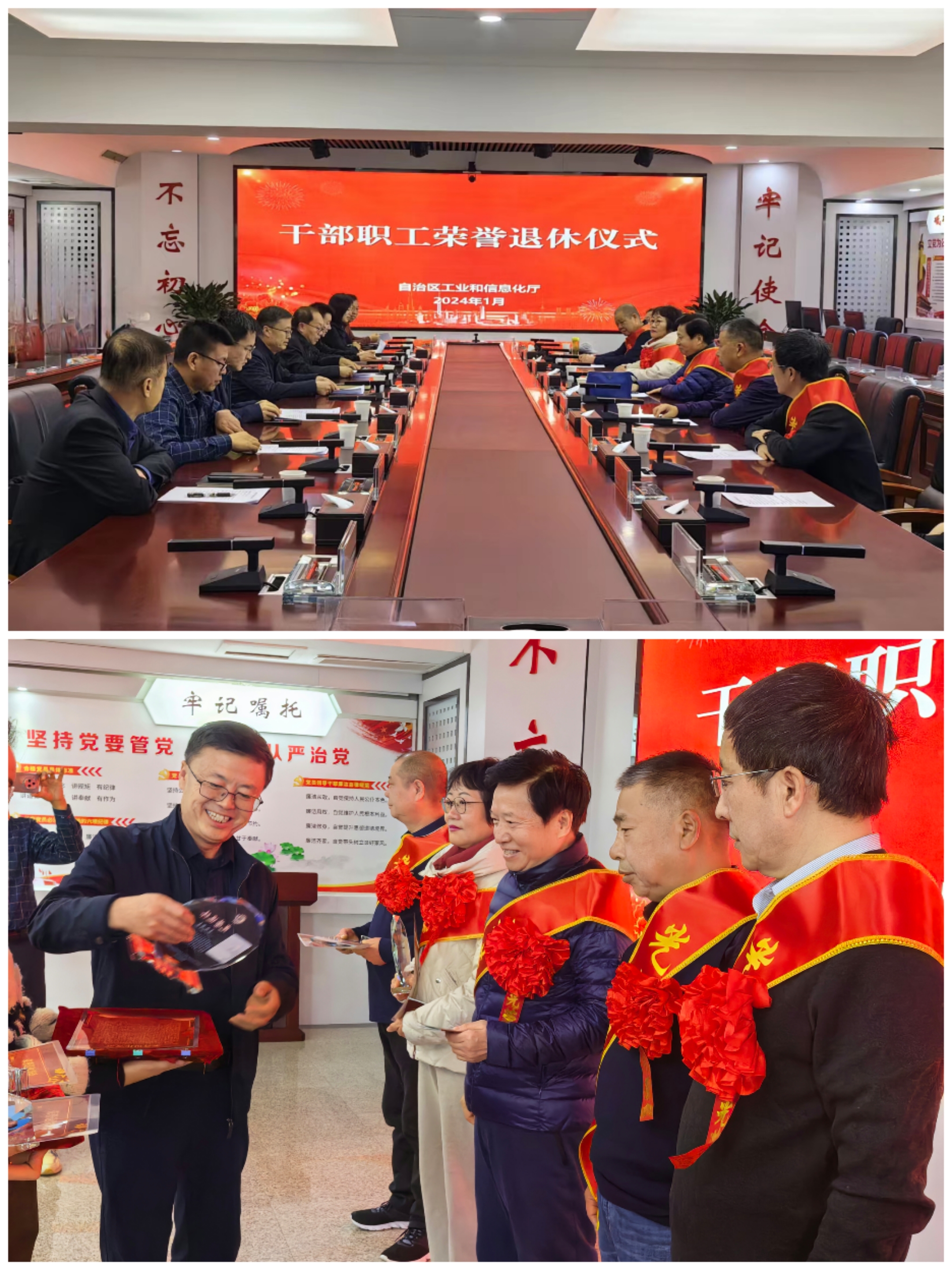 为进一步体现对干部职工的关心和关爱,增强退休干部职工的政治荣誉感、组织归属感。1月17日,小鸭看看 举行了一场庄重而温馨的干部职工荣誉退休仪式,厅党组成员、副厅长刘红宁等同志参加退休仪式,为退休老同志们佩戴荣退绶带,赠送了纪念品。