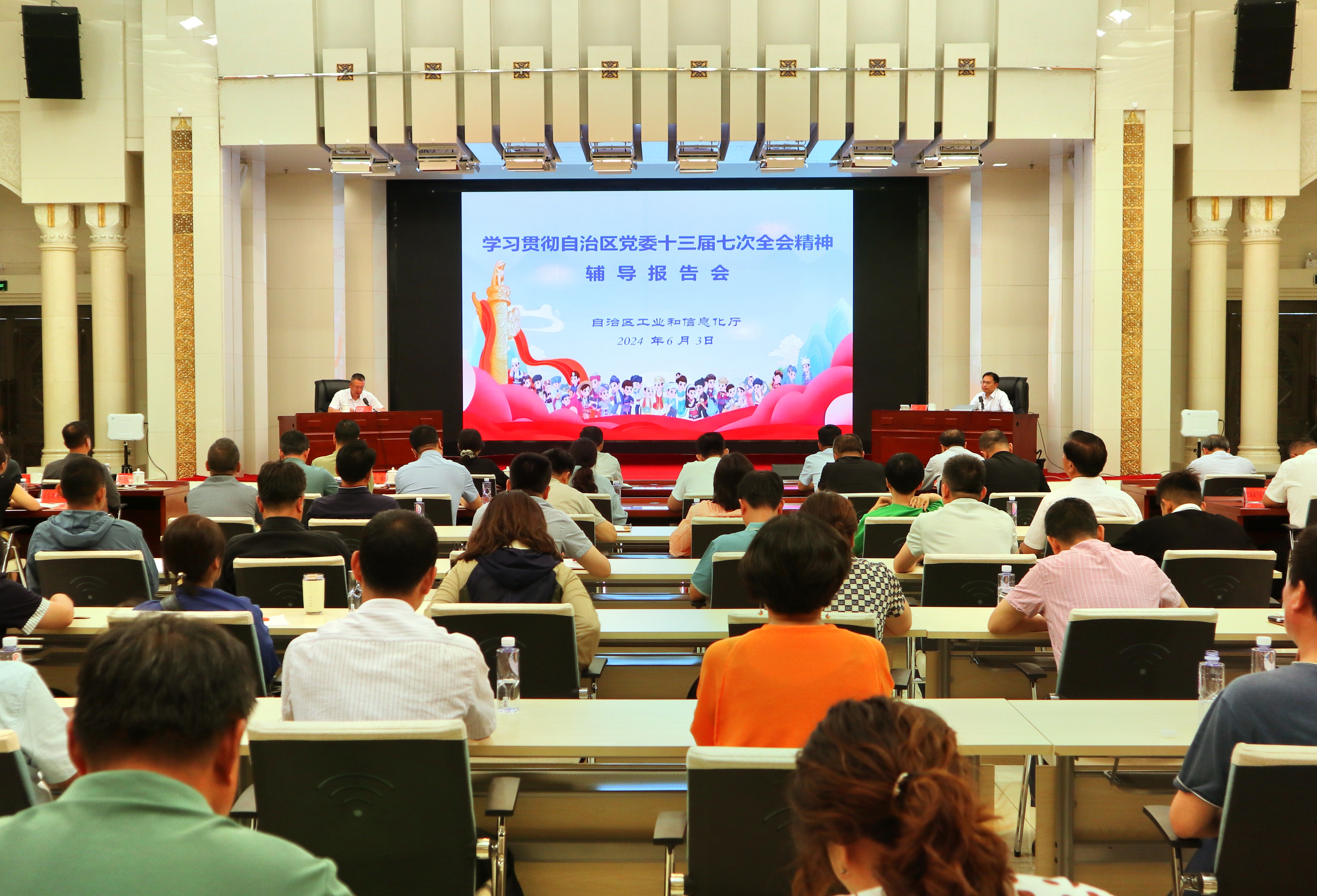 为深刻领会习近平总书记关于加强和改进民族工作的重要思想、铸牢中华民族共同体意识的重要论述,认真贯彻自治区党委十三届七次全会精神,6月3日,小鸭看看 举办学习贯彻自治区党委十三届七次全会精神辅导报告会,邀请自治区党委统战部领导作辅导报告。厅党组书记、厅长杨金海主持并讲话,厅机关和事业单位全体党员干部150余人参加了报告会。