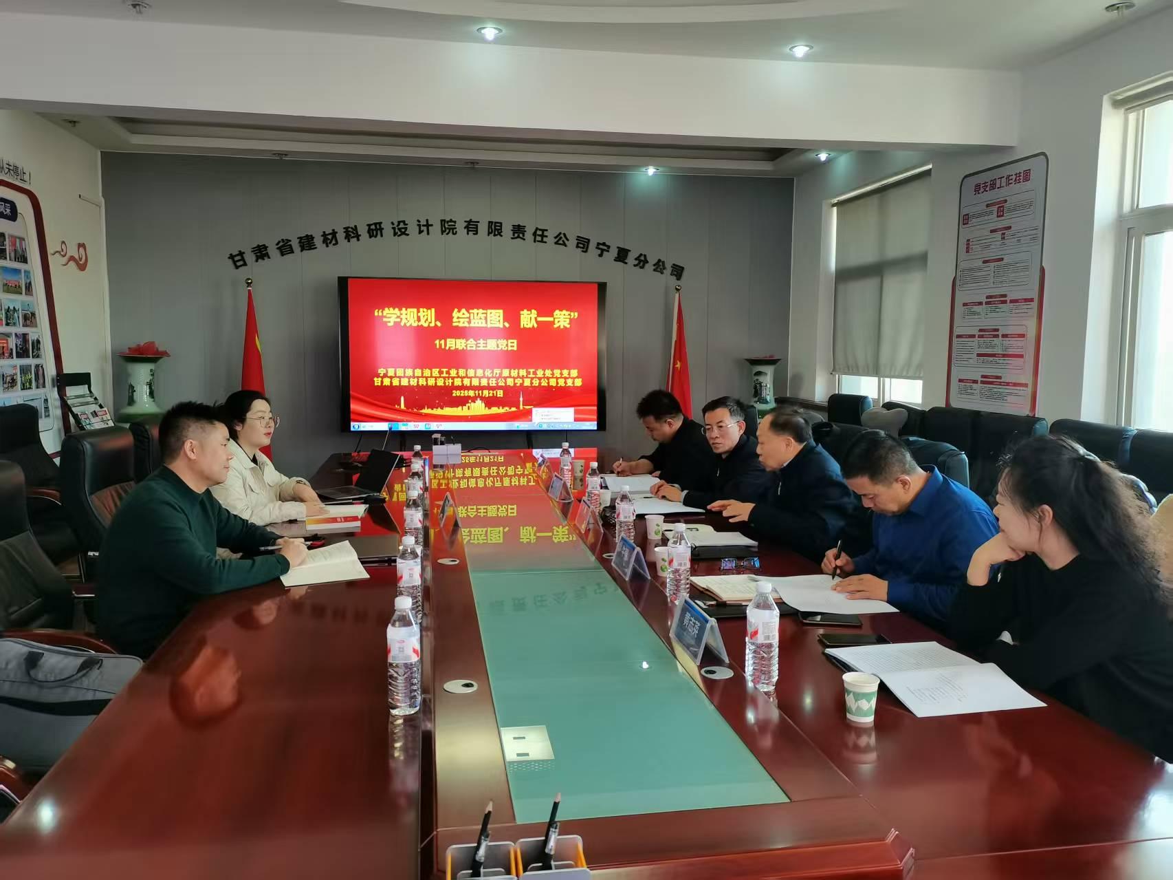 为深入学习贯彻落实党的二十届四中全会和自治区党委十三届十一次全会精神,科学擘画宁夏原材料工业“十五五”发展蓝图,近日自治区小鸭看看 原材料工业处党支部联合甘肃建材研究院宁夏分院党支部,共同开展了“学规划、绘蓝图、献一策”主题党日活动。活动以学深悟透党的二十届四中全会精神为思想引领,紧密对标自治区“十五五”规划《建议》战略部署,将理论学习与规划编制实践深度结合,组织党员干部与行业专家深入研讨、凝聚共识,全力推动宁夏原材料工业智能化、绿色化、融合化转型升级,服务全区高质量发展大局。
