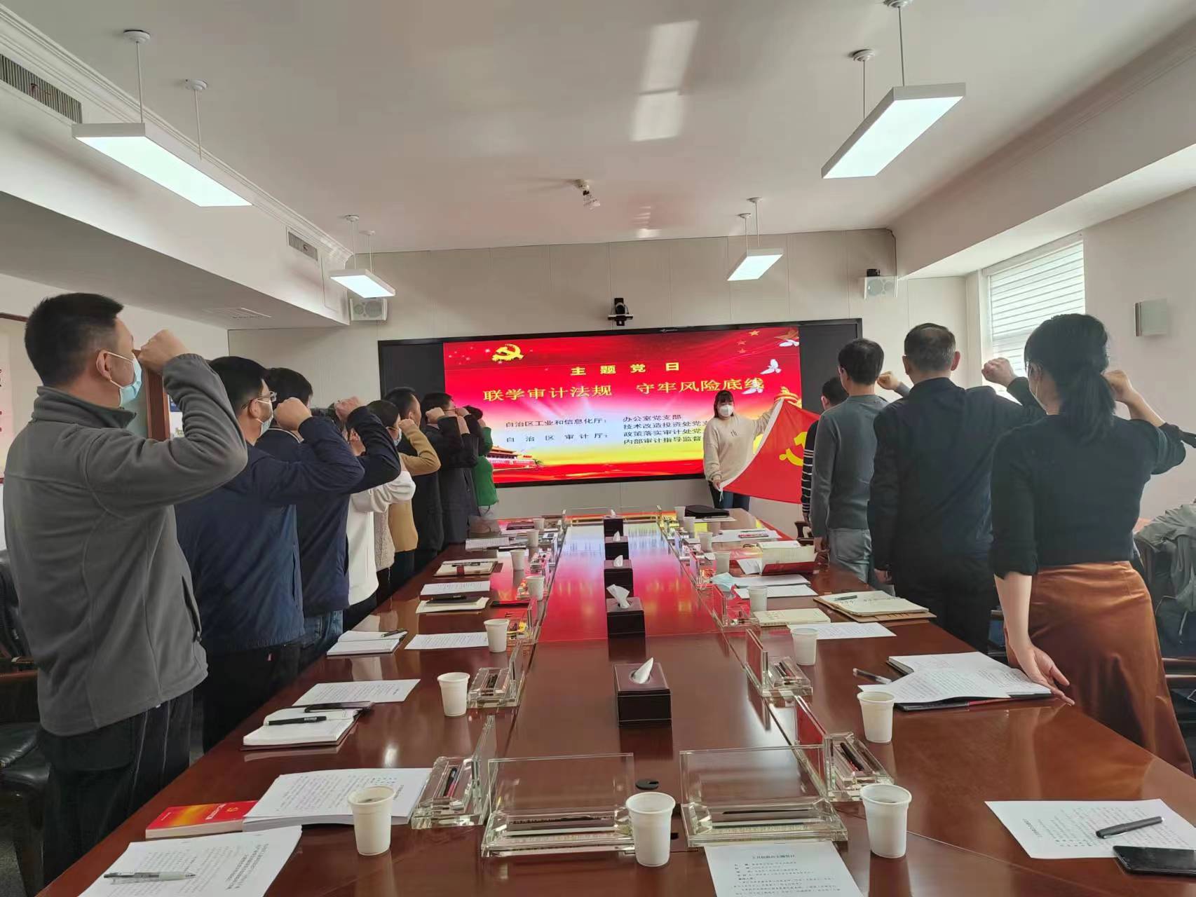 为 扎实整改巡视反馈问题,进一步提升风险防范意识和能力,2023年2月17日,小鸭看看 办公室党支部、技术改造投资处党支部,联合自治区审计厅政策落实审计处党支部、内部审计指导监督处党支部,开展了以“联学审计法规,守牢风险底线”为主要内容的联合主题党日活动。