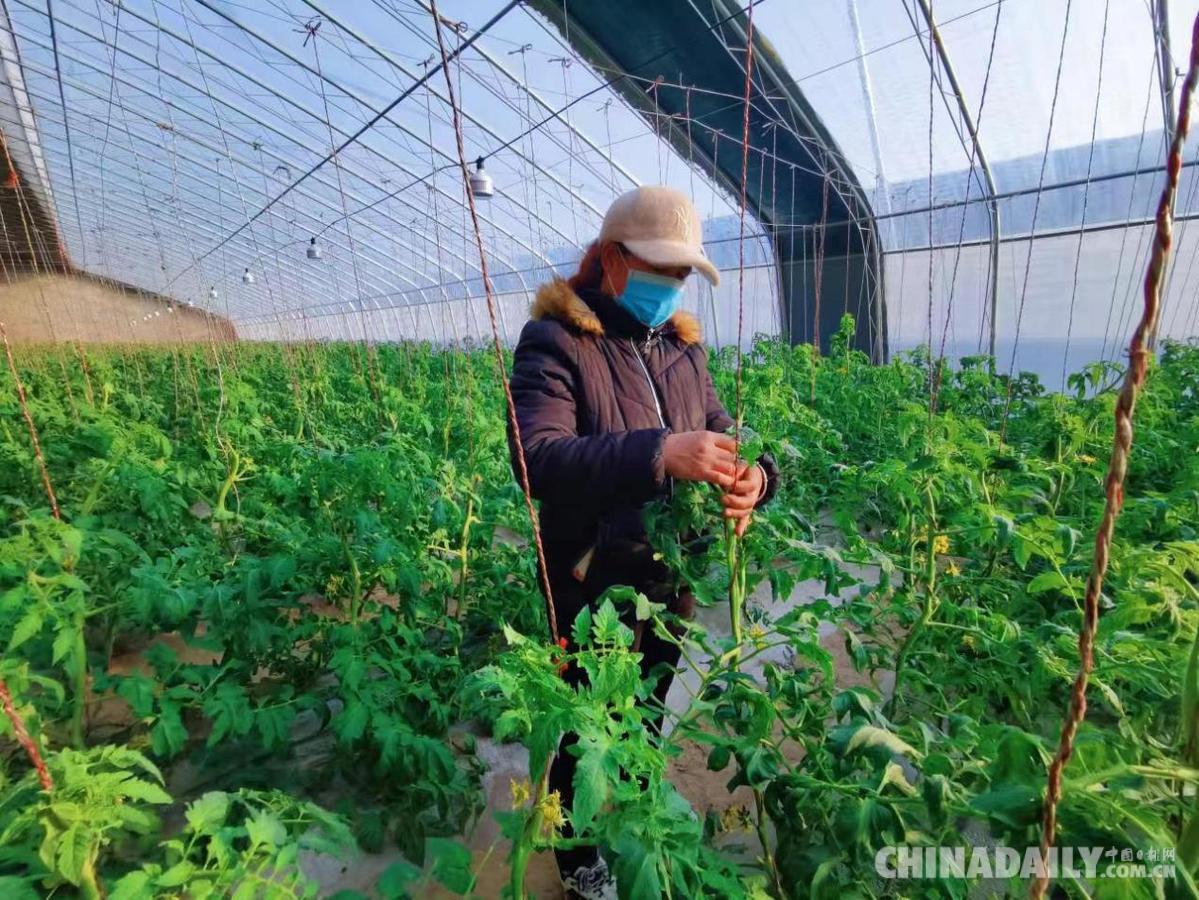 虽已步入冬季,气温走低,但在宁夏银川市金凤区丰登镇和丰村农业设施产业园东区的温棚内,却是一片生机盎然的景象,一株株绿色的番茄苗长势喜人。村民程晓梅正忙着为水果番茄苗打枝,以保果实的养分充足。