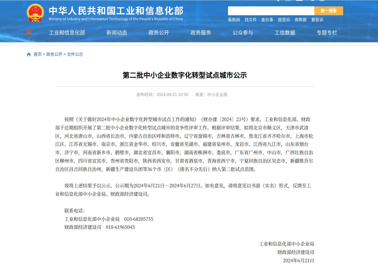 全国中小企业数字化转型试点城市公示(第二批) 吴忠市成功入围